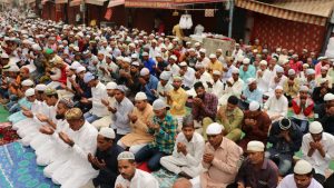 ईद की नमाज़ अदा करते हुए मुस्लिम भाईचारे के लोग.