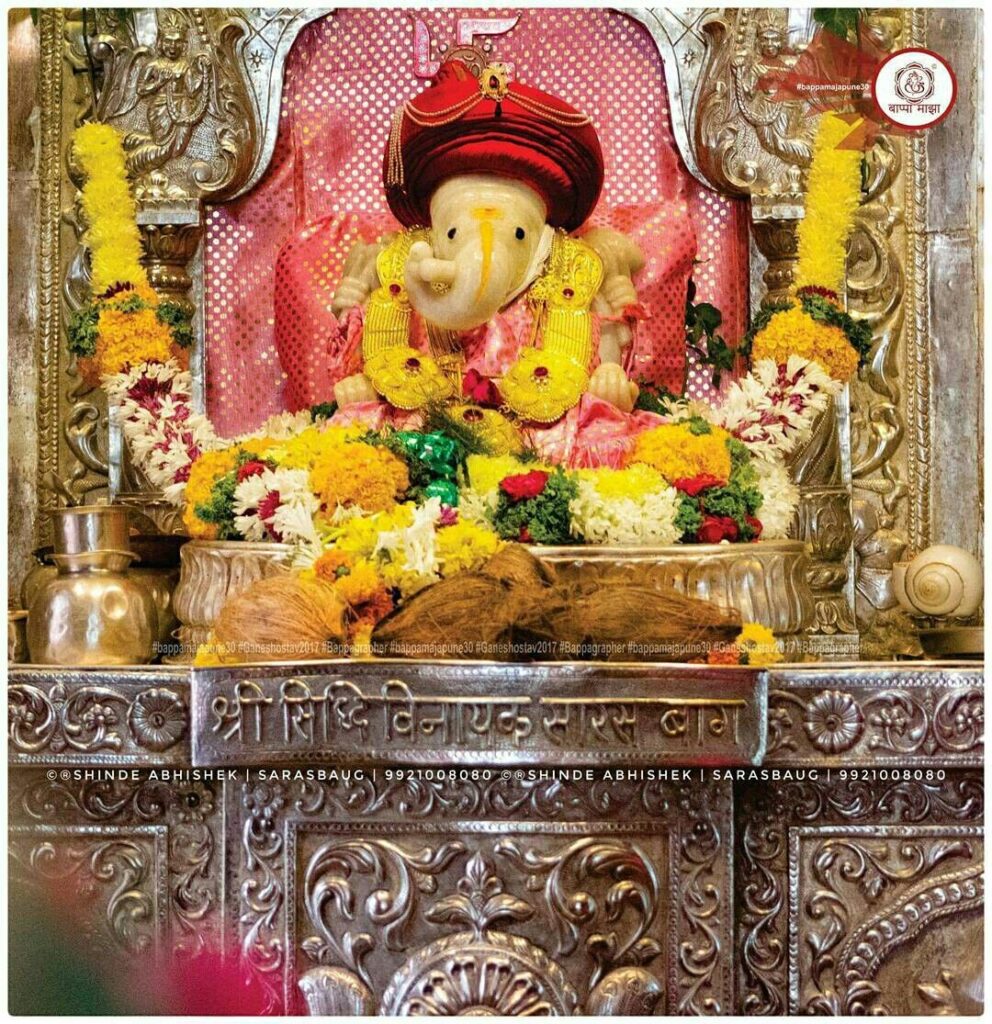भगवान गणेश को समर्पित, सारसबाग गणपति मंदिर का एक सुंदर और समृद्ध इतिहास है। मंदिर के पीठासीन देवता, श्री गणेश को श्री सिद्धिविनायक कहा जाता है, क्योंकि इस मूर्ति की सूंड दाईं ओर है। झील के बीच में एक द्वीप पर स्थित होने के कारण, मंदिर को झील में भगवान गणेश के नाम से भी जाना जाता है।